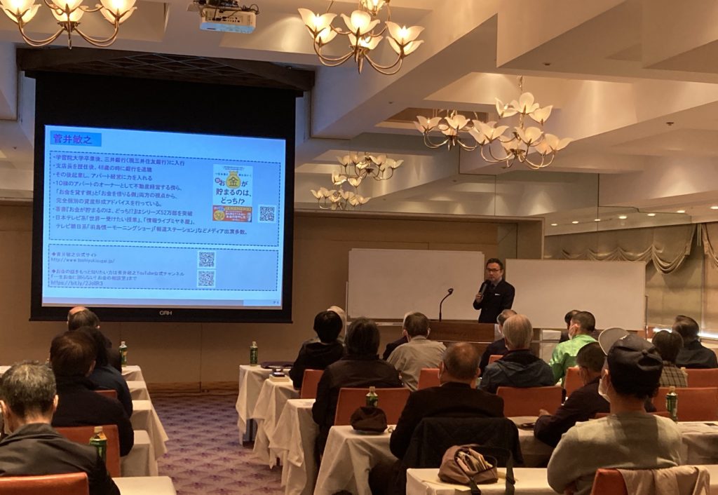 本日は昨年9月開催のセミナーに続き、お金の専門家 菅井 敏之 氏に前後半に渡りご講演いただきました。みなさまご存知の通り菅井先生は元メガバンクの支店長であり、お金を貸す側としての視点はもちろん、ご自身のアパートを経営する不動産投資家としての視点から『世界一受けたい授業』や『報道ステーション』等様々なメディアにご出演されております。ご自身の著書『お金が貯まるのは、どっち!?』はベストセラーとなり、近年ではYouTube≪ https://www.youtube.com/@user-ll4lm6yc8f ≫でも動画投稿をされる等多方面でご活躍されていらっしゃいます。私達スタッフも講演前に少しだけお話をさせていただきましたが、菅井先生はとってもパワフルでお話をしていると吸い込まれてしまいそうなほど魅力的な先生です。さて、本日は【不動産投資を考えている方向け お金が貯まるのはどっち⁉】と題したお話をしていただきました。土地を有効活用したい→賃貸物件を建築する→せっかく建てた賃貸物件なのだから建物のことも管理のことも熟知した会社へ任せる。決して一人で悩まずに周りの人や環境に、恥ずかしがらず助けを求めましょう。