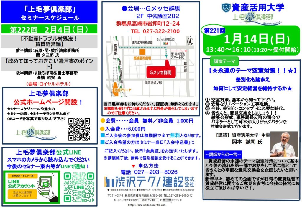 開始時間 13:20受付開始~ 13:40講演開始 前半50分 後半50分